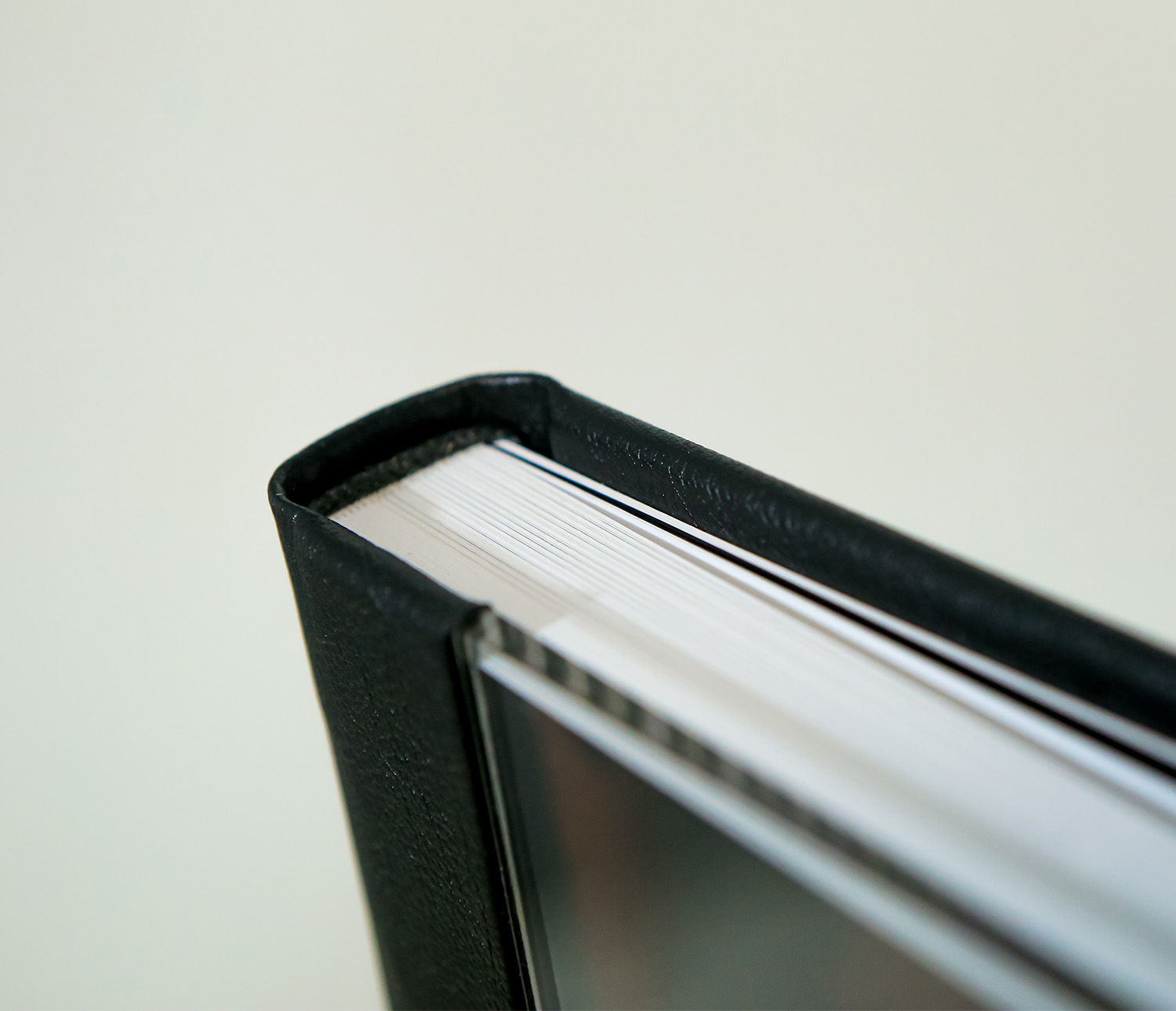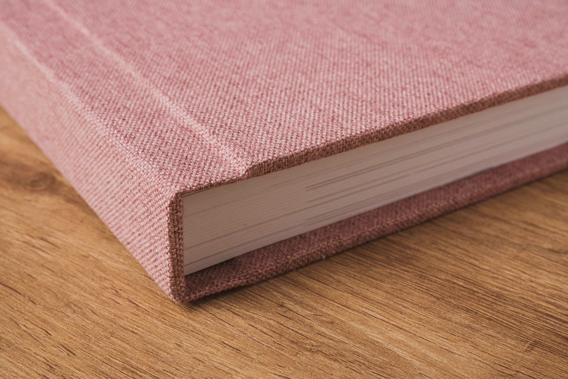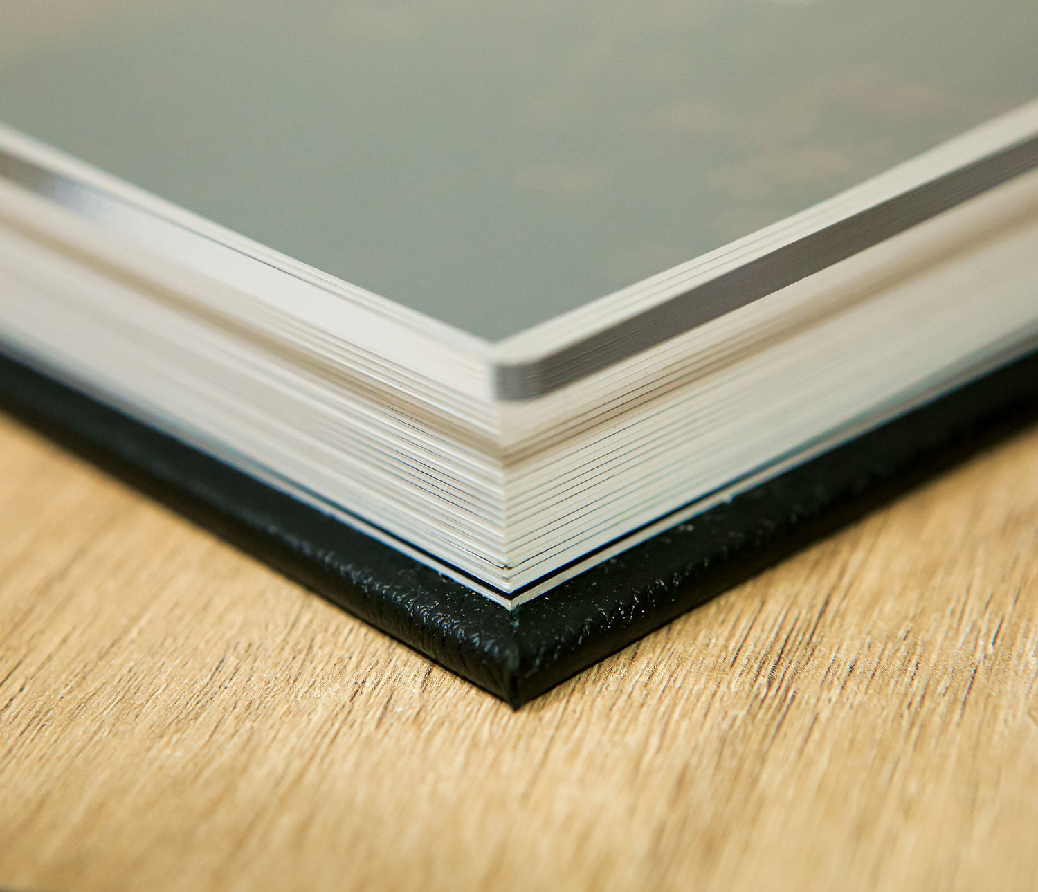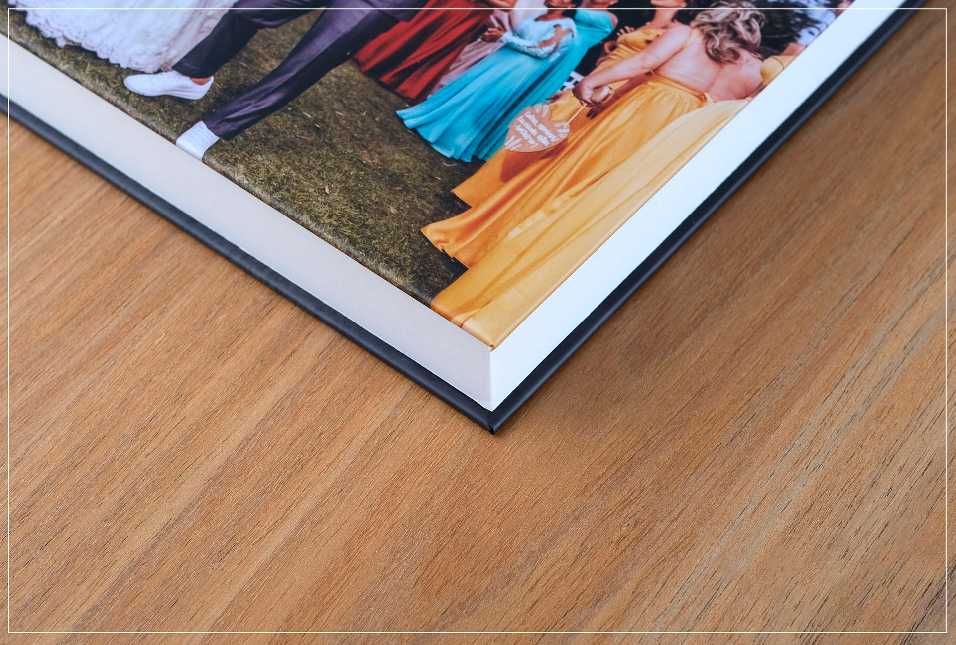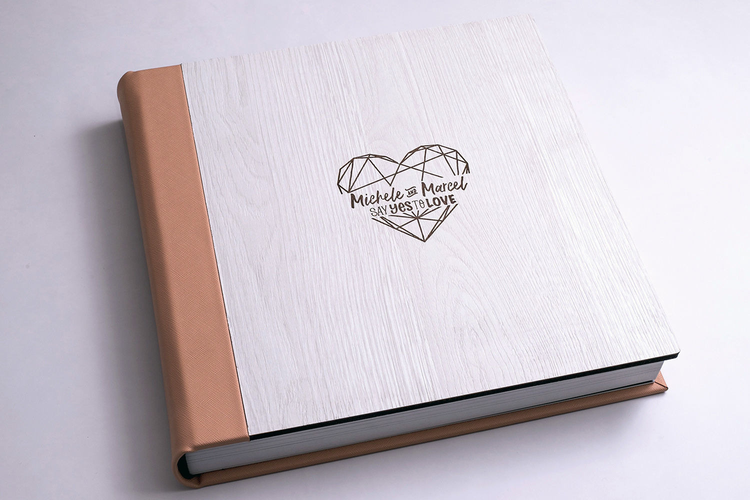 Album com capa em madeira MDF e dorso e verso revestido em courino.