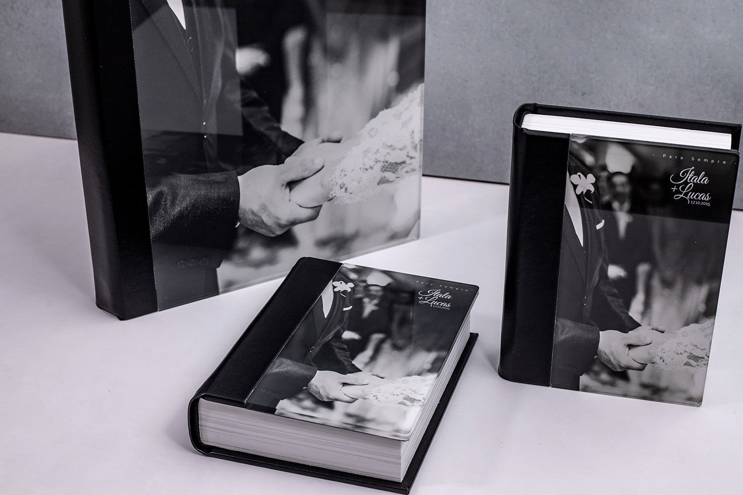 Álbum com capa em acrílico transparente 4mm.